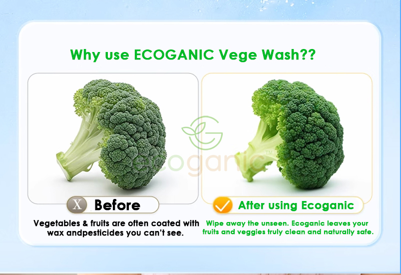 ✅ Ecoganic Vege Wash – Removes wax, pesticides, and dirt naturally.