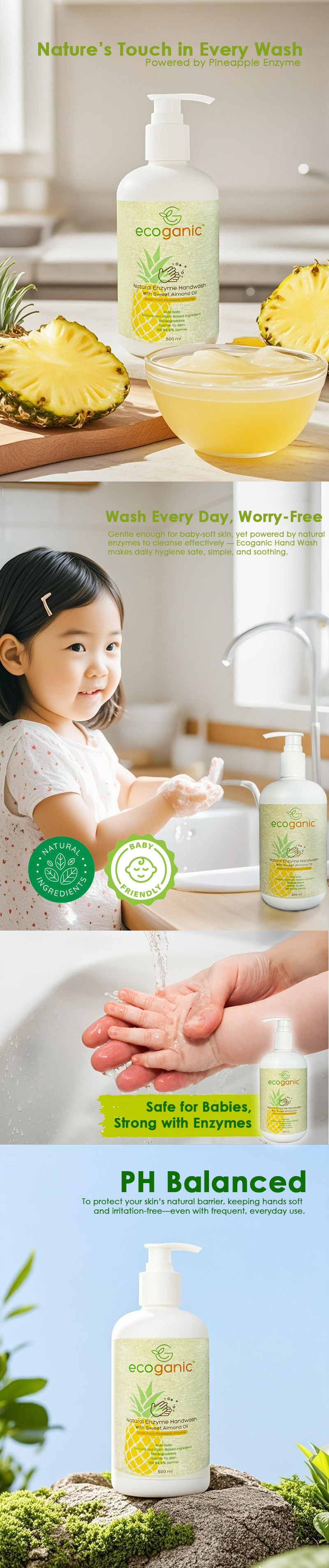 Keep your hands clean and cared for with Ecoganic Hand Wash, crafted with plant-based ingredients and powered by natural enzymes.